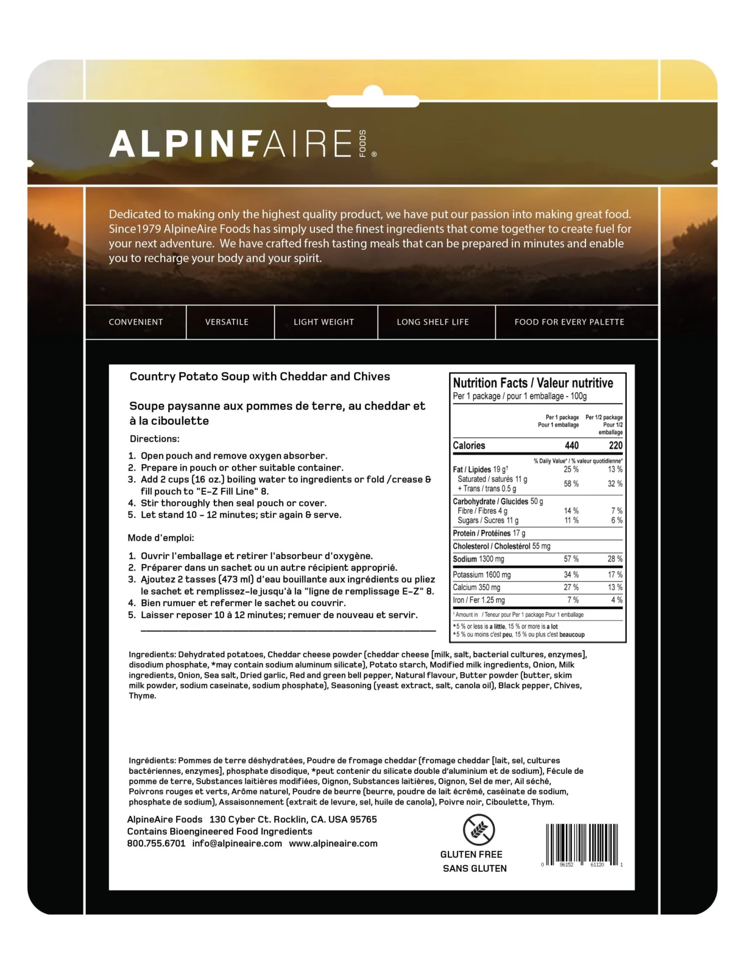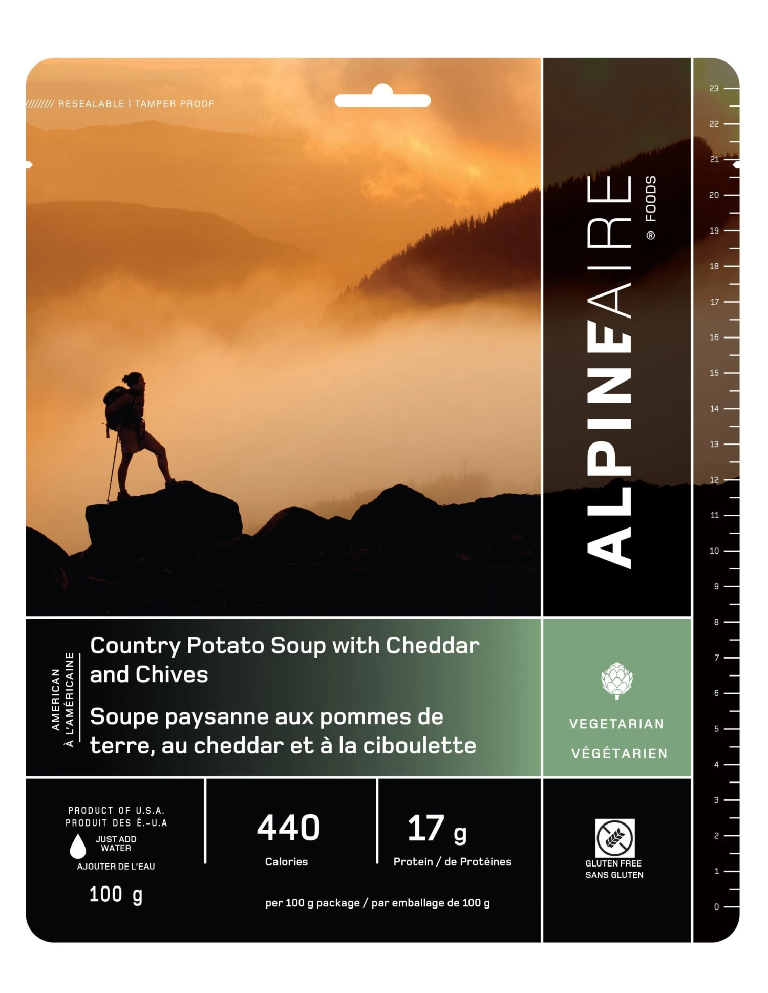 Vegetarian and gluten free creamy potato soup accented with shreds of cheddar cheese and chives with a hint of black pepper.