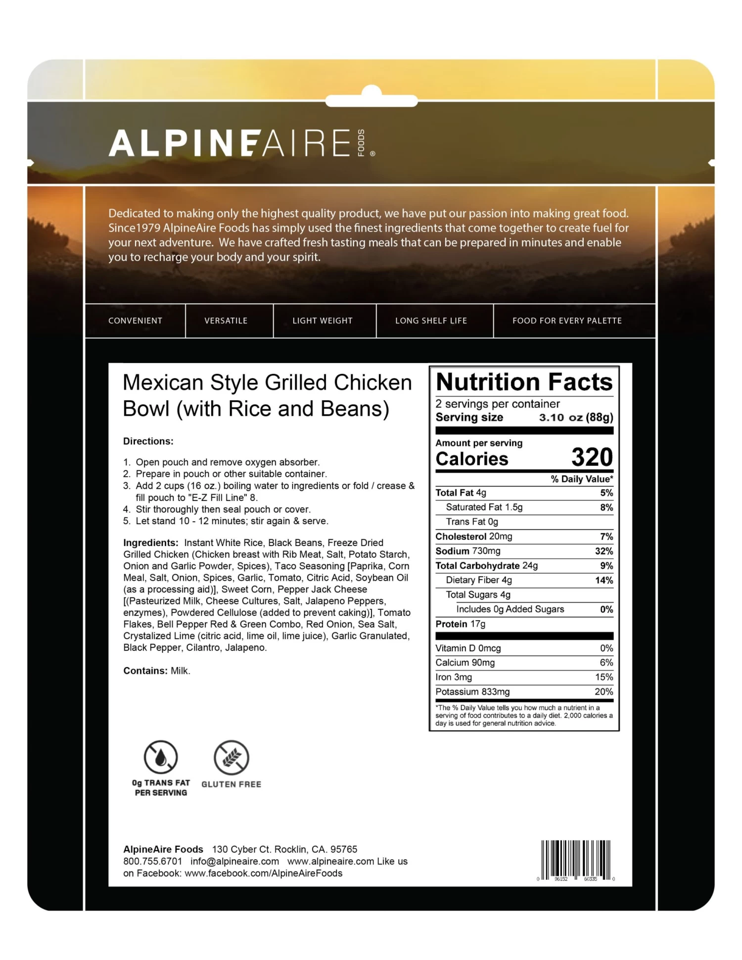 Seasoned chicken, corn, beans, and rice with zesty lime and pepper jack cheese. Gluten Free.