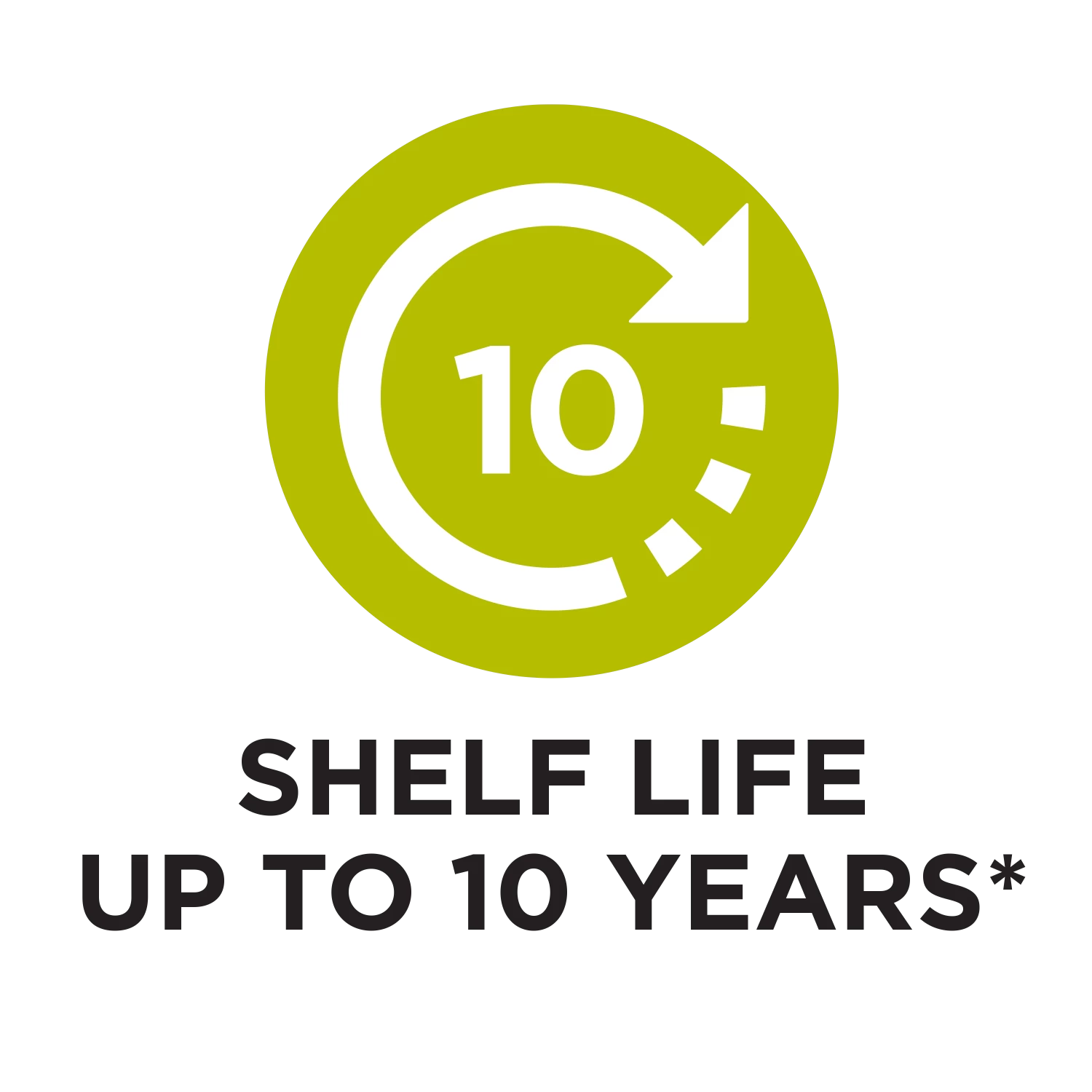 *Product good up to 10 years when unopened. Best when stored in a cool and dry place at temperatures between 55F and 70F. Actual shelf life may vary based on individual storage conditions.