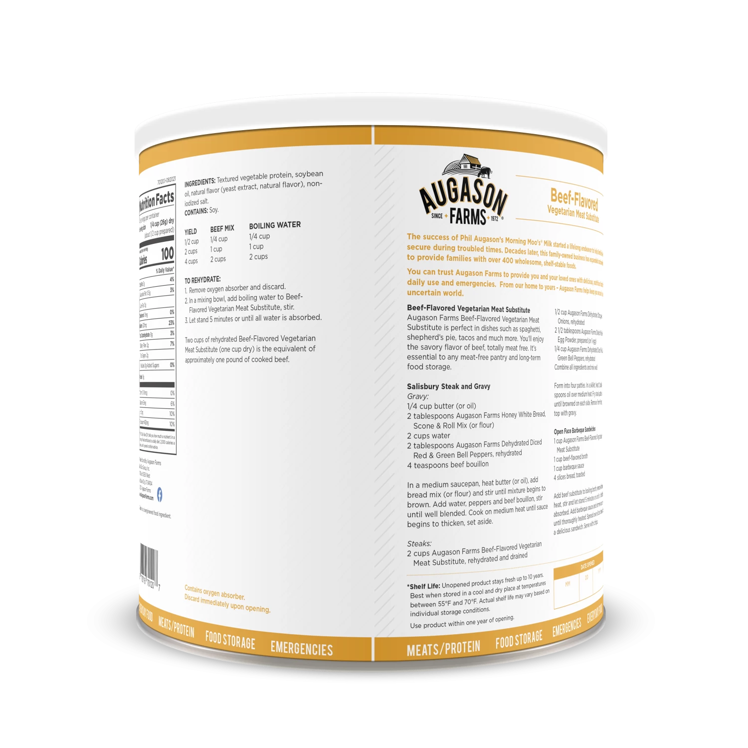 Eating a vegetarian diet can be frustrating when others want meals made with meat. The Beef Flavoured Vegetarian Meat Substitute is the perfect solution. Made from defatted soy flour and high in protein, this can be used in any dish as a substitute for ground beef. Included in spaghetti, shepherd’s pie, or tacos, you’ll enjoy the flavour of beef without having to eat any meat. Once rehydrated, use at once or refrigerate.