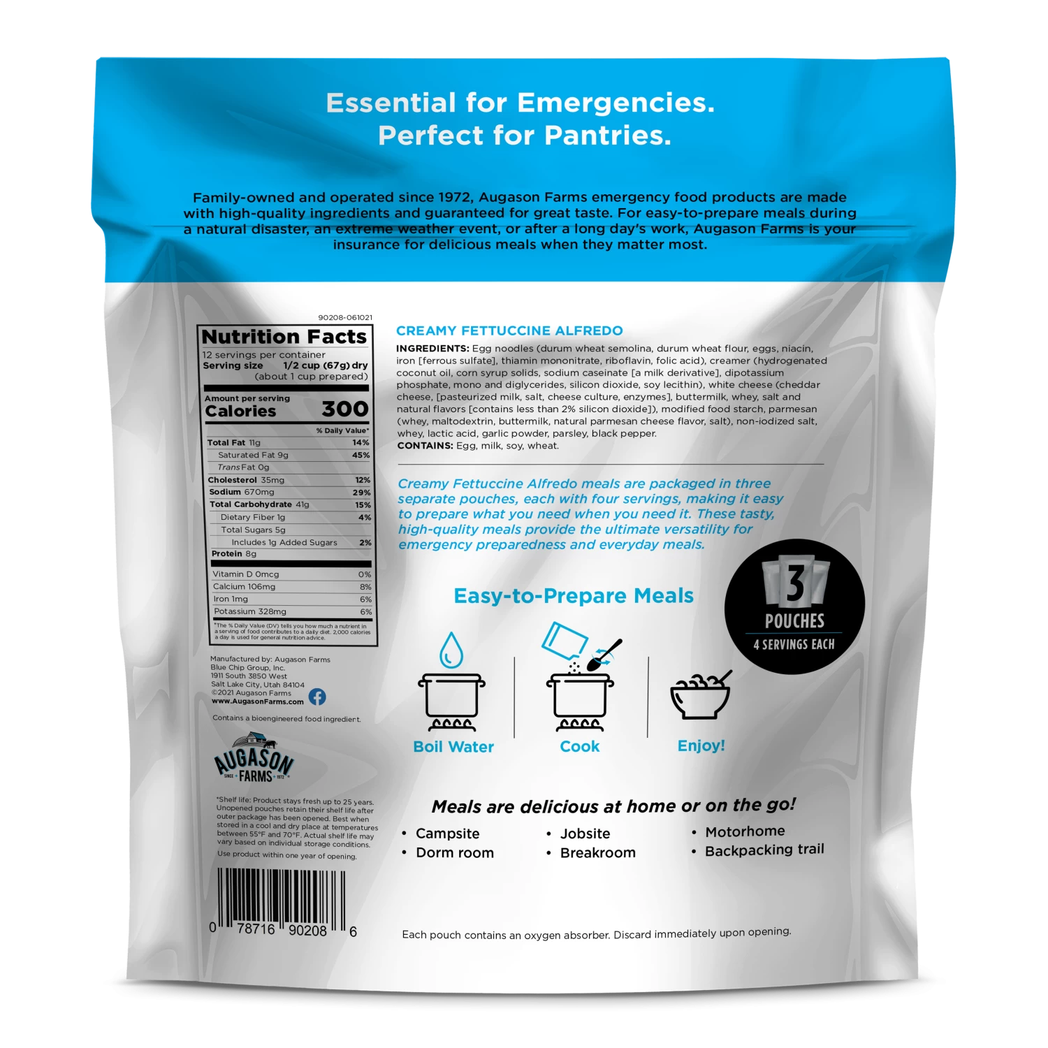 Fettuccini Alfredo is always a crowd pleaser, but the time it takes to find or make the perfect sauce can make even the most proficient cook hesitant. Augason Farms has created the ideal solution. With the freeze dried Fettuccine Alfredo, your dinner will not only be a hit, but will be easy and quick to make. A simple, delicious solution to your dinner needs!
