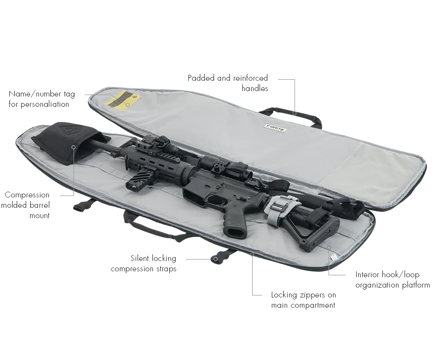 Designed to carry and protect your 36in rifle. With durable 500D nylon exterior and 10mm closed cell foam for padding, you can be confident in your firearm’s care. Straps are silent locking, and carrying handles are padded and reinforced. First Tactical’s Thru System hanging hooks, hook/loop interior mounting platform, and compression moulded barrel mount complete this functional, protective, and innovative rifle sleeve.