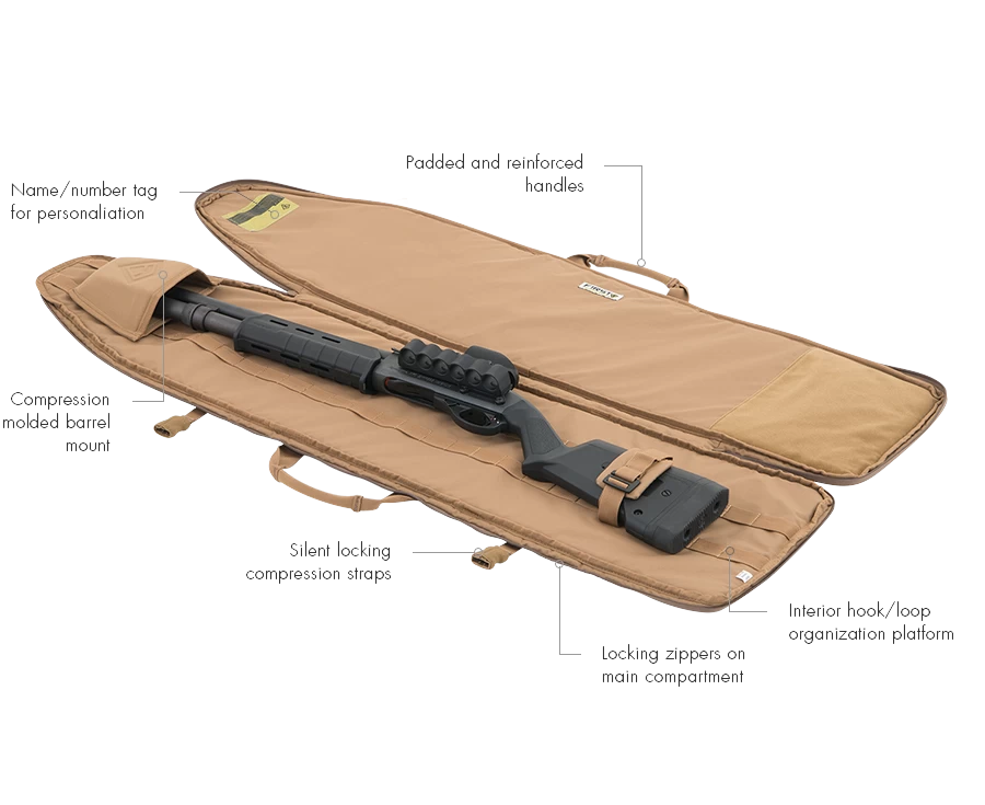 Designed to carry and protect your 42 inch rifle. With durable 500D nylon exterior and 10mm closed cell foam for padding, you can be confident in your firearm’s care. Straps are silent locking, and carrying handles are padded and reinforced. First Tactical’s Thru System hanging hooks, hook/loop interior mounting platform, and compression moulded barrel mount complete this functional, protective, and innovative rifle sleeve.