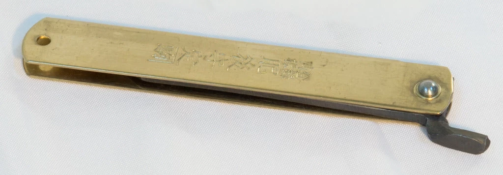 120mm long blade; brass handle. Great for opening packages, feed bags, soil bags, sharpening pencils, whittling, cutting fruit and more.