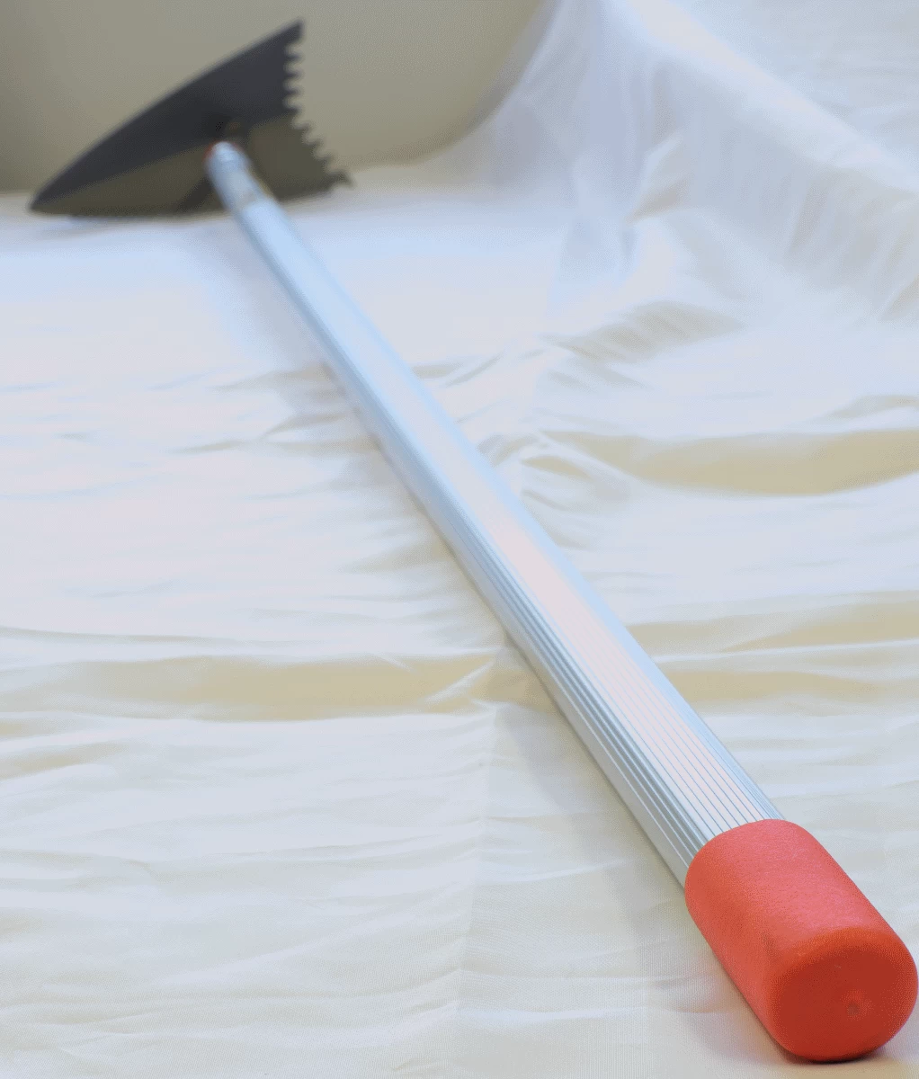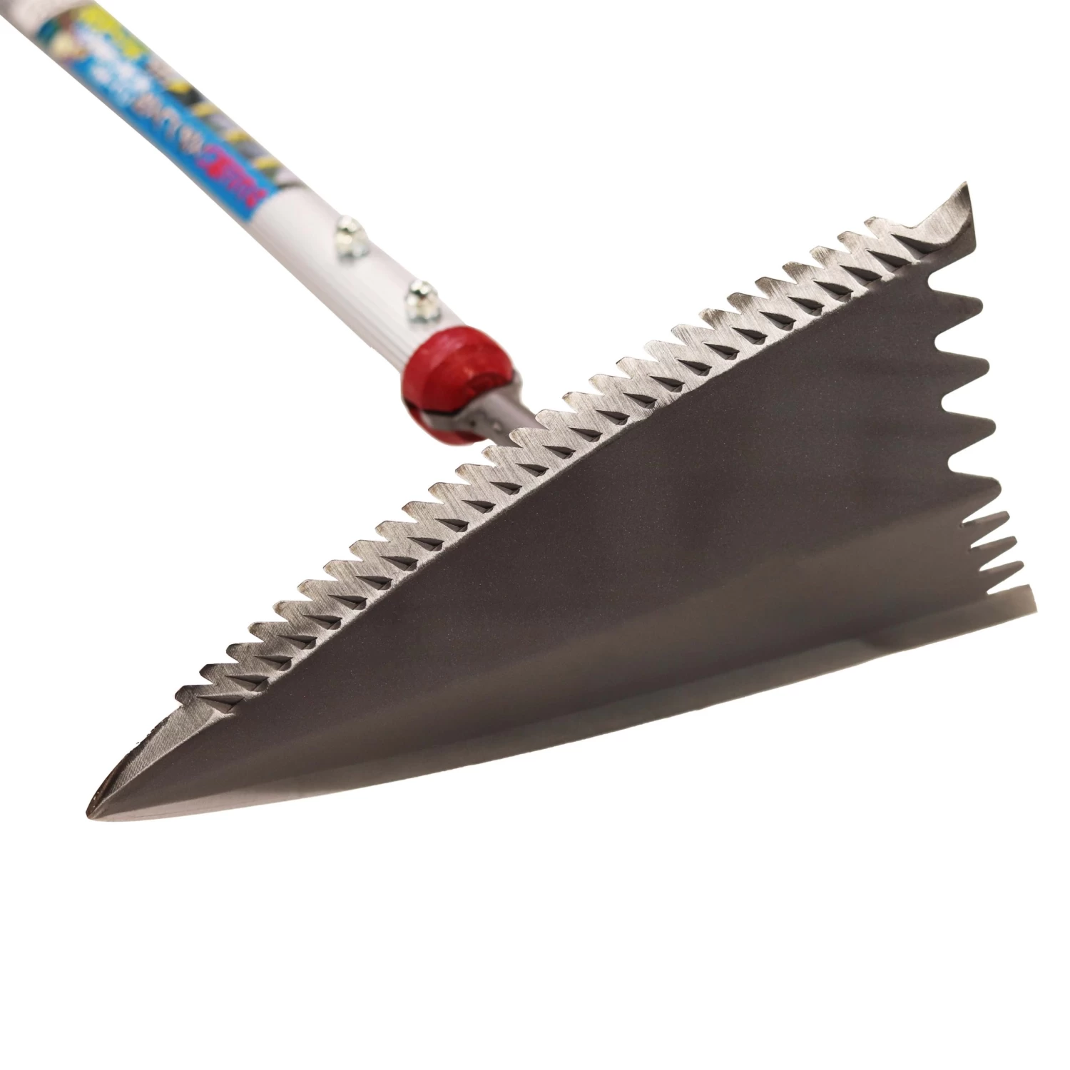 Stainless steel blade is easy to maintain. The long aluminum handle is very light and easy to work with.