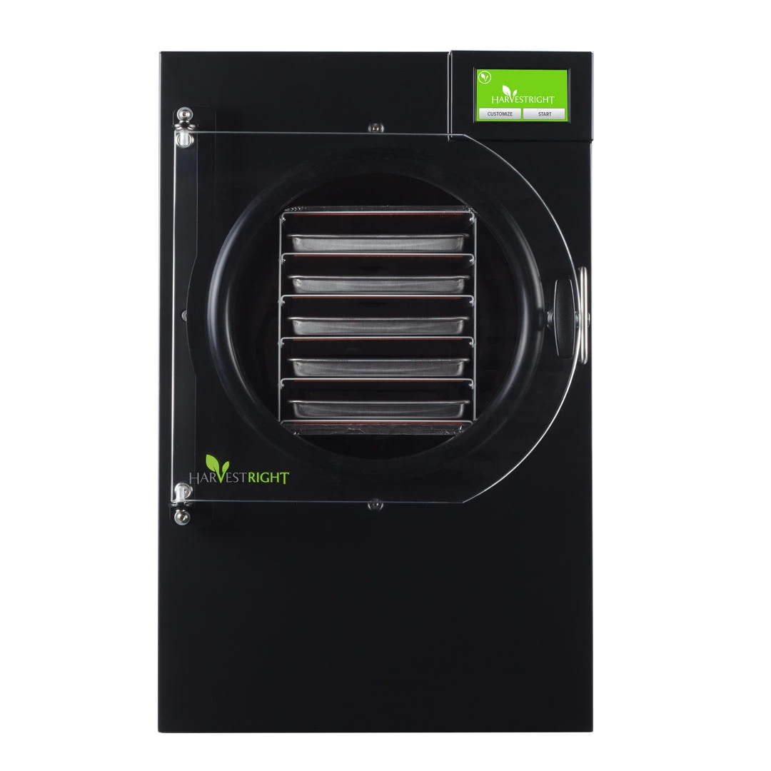 When we say Home Freeze Dryer, we truly mean home. It provides the convenience, simplicity, and electrical power requirements of other major kitchen appliances. Harvest Right has built the only Home Freeze Dryer that is truly a home appliance. It is easy to use, small in size, and has a large capacity. The smart technology allows one to simultaneously place various types of food in the chamber, press start, and walk away. By itself, the freeze dryer calculates the necessary dry time and automatically monitors the freeze dry process to completion. This makes it easy to use, as well as convenient — saving you time, money, and energy.