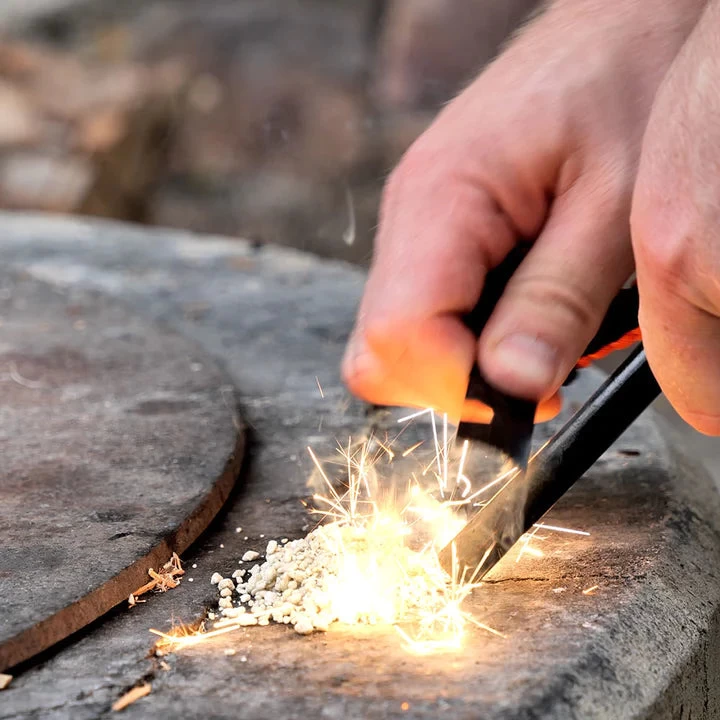 It’s easy to use, too. Simply strike it with the accompanying striker plate, and a shower of sparks will fall as the ferrocerium reacts with oxygen and gets REALLY hot. You’ll have a roaring fire in no time!