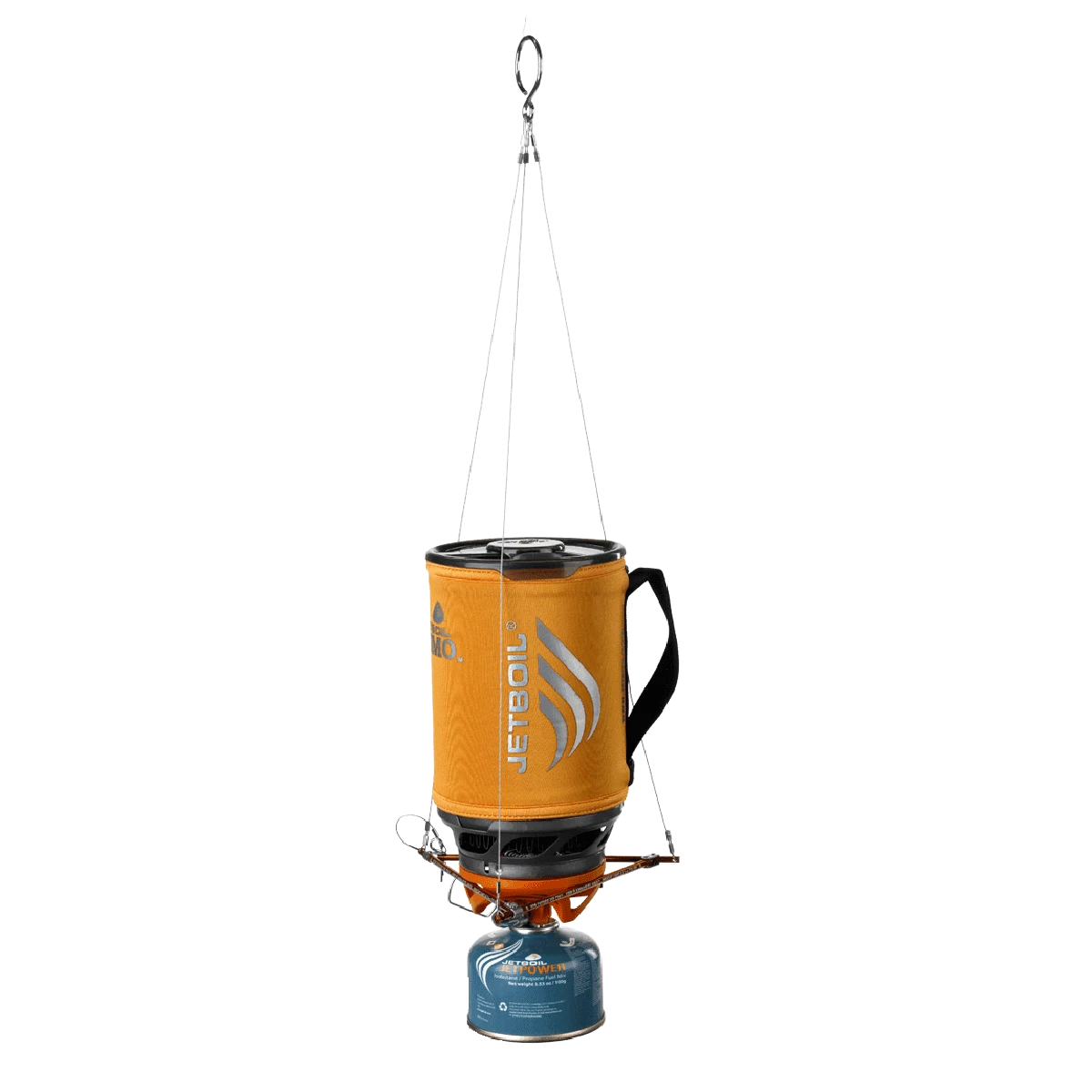 From wall climbs to backcountry ski trips, the Jetboil Hanging Kit gets your Jetboil system up and off the ground. The hanging kit attaches securely to your Jetboil burner, making it easy to hang your stove when necessary. Use the hanging kit to suspend Zip, Flash, MicroMo, MiniMo, and SUMO cooking systems. Not for use with the Jetboil MightyMo, Joule, cookware and accessories.