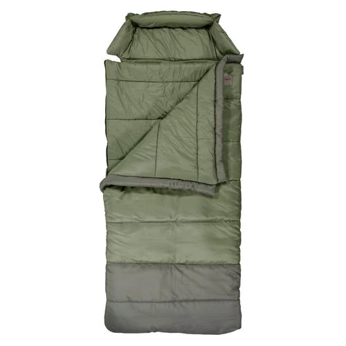 The Big Cottonwood sleeping bag is designed for those unwilling to sacrifice comfort. You’ll forget all about your bed at home in this oversized, rectangular sleeping bag with plenty of room to stretch out. Featuring a rugged, canvas exterior with a soft-touch polyester liner, the Big Cottonwood’s high loft insulation will keep you warm in below freezing temperatures. A drawstring shoulder baffle seals in warmth and eliminates a cold draft. This ultra-comfortable sleeping bag is perfect for base camping, vans, RVs, trailers, and cabins.