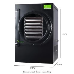 Chrome Plated Iron Trays: Available with 10 chrome-plated iron trays with 1/4 inch holes to dry even the smallest fruits and herbs.