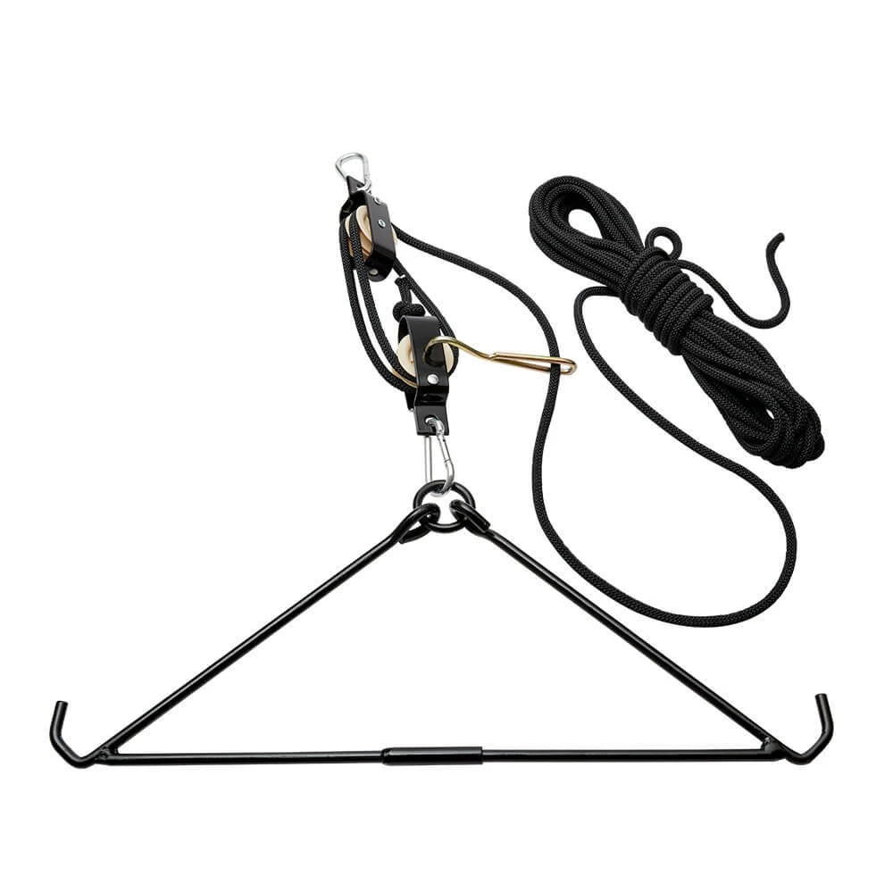 The Collapsible Gambrel with Rope Hoist supports the cooling and draining of an animal when attached by the hind legs. Single-person lifting ability is made possible thanks to the weight-reducing pully system. Use it at home or break down the 22-inch lightweight gambrel to easily fit into your hunting bag.