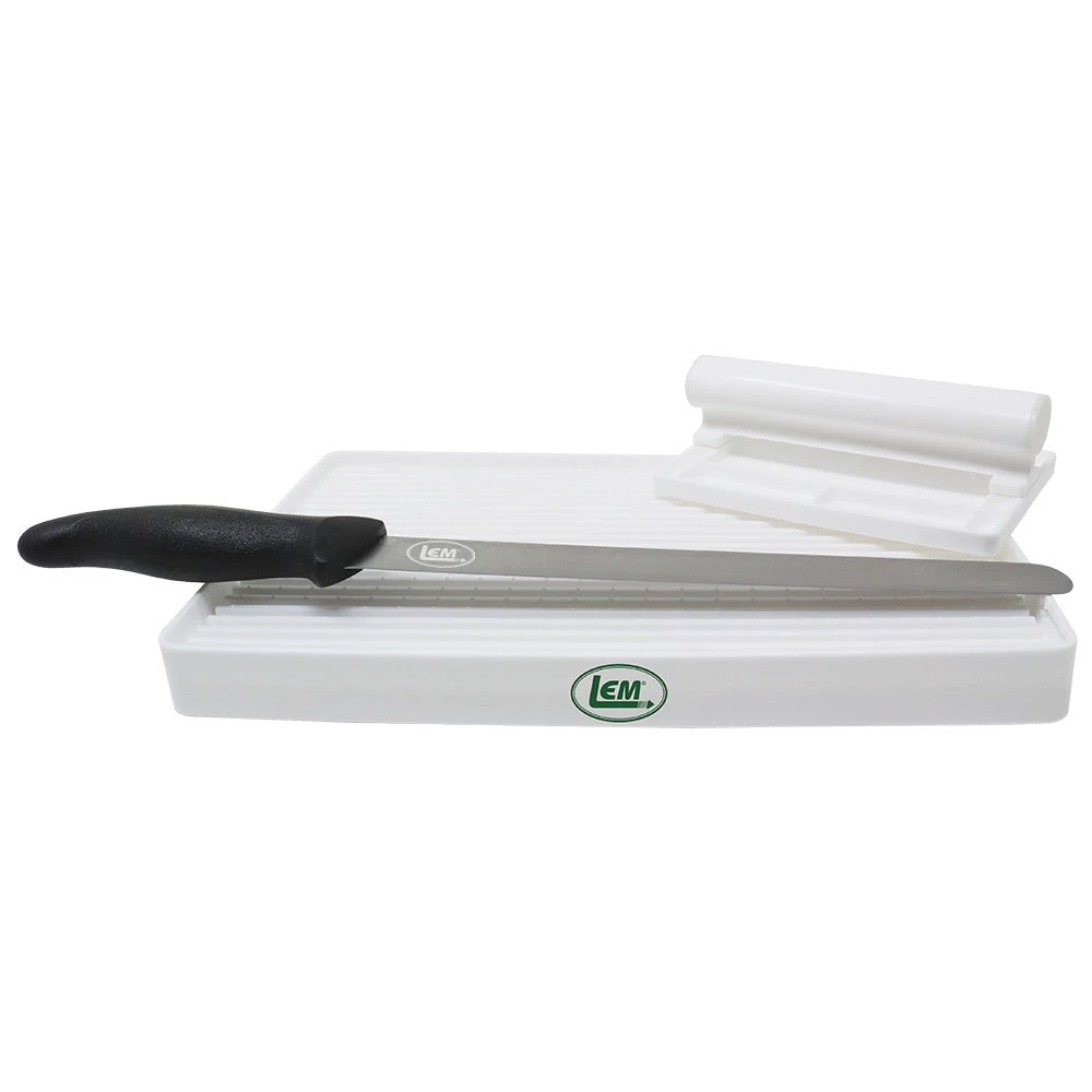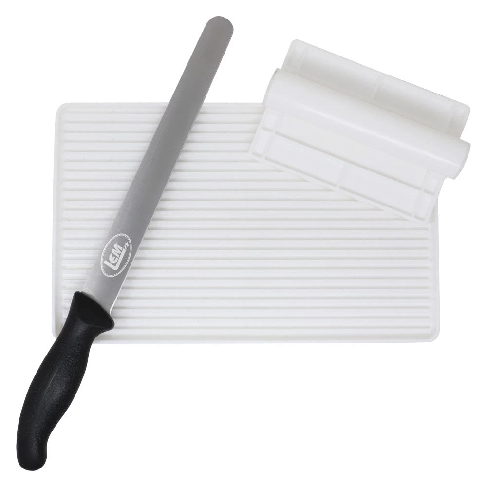 - Dishwasher-safe polypropylene jerky board and pressing plate.