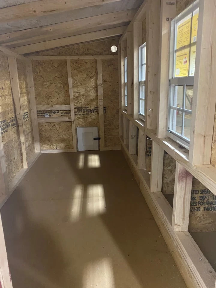 - The ceiling has radiant barrier sheathing to keep the coop cooler in the summer heat.