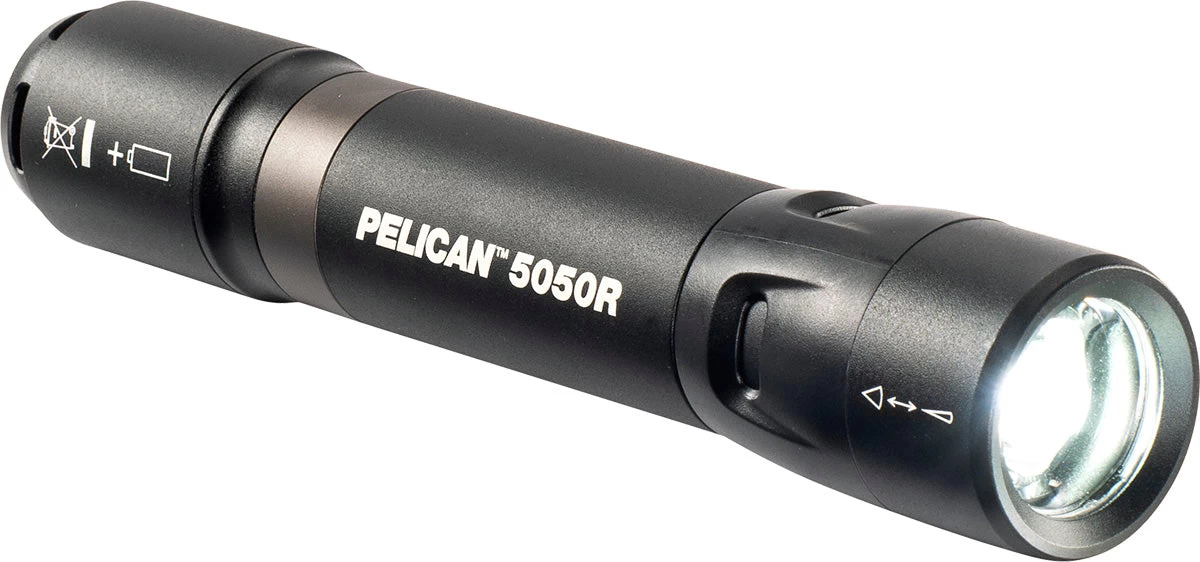 Get local to long distance in a slide. The new Pelican 5050R flashlight features flood to spot technology: Flood position projects a wide beam to illuminate your work area, and spot beam for a long distance focused beam.