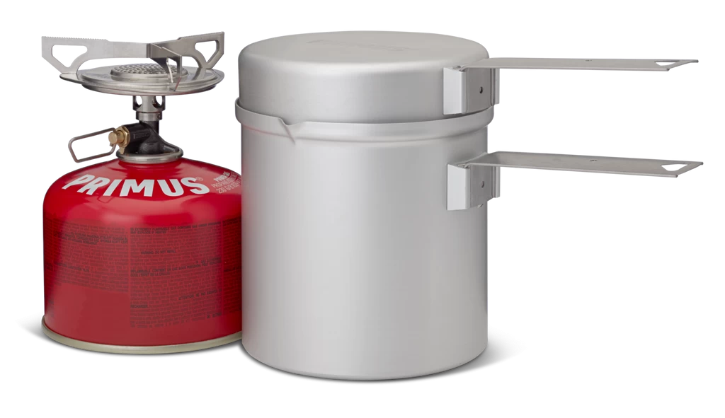 - Lightweight anodised aluminum pot (0.5L) fits stove attached to the 230g canister for easy packing