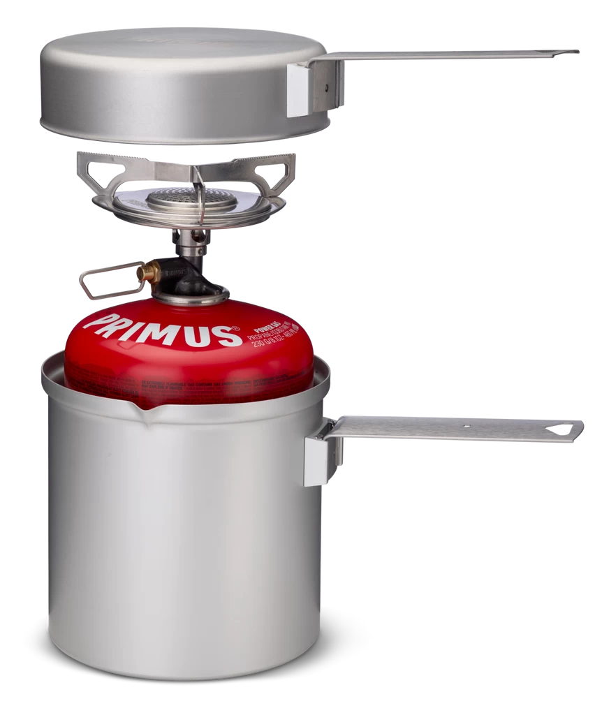 Simply pack your Essential Trail Stove attached to your 230g gas canister into the 0.5L pot for a lightweight and packable camp kitchen that will have you cooking in under a minute.