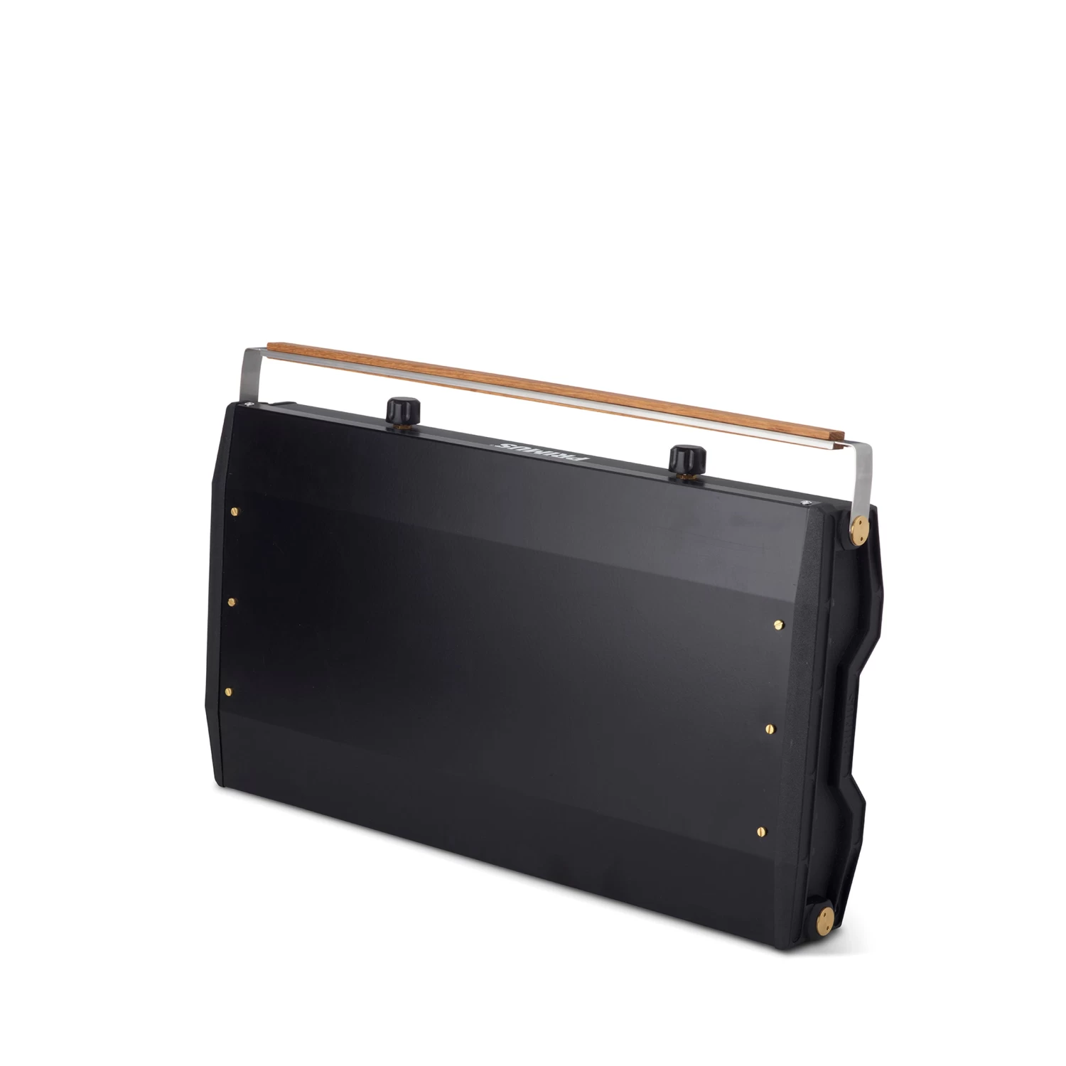The sleek die-cast aluminum and stainless steel body will hold up to years of use. The internal pot supports and drip tray are removable for easy cleaning. When storing, simply lock closed as this slim-profile stove can be stashed almost anywhere.