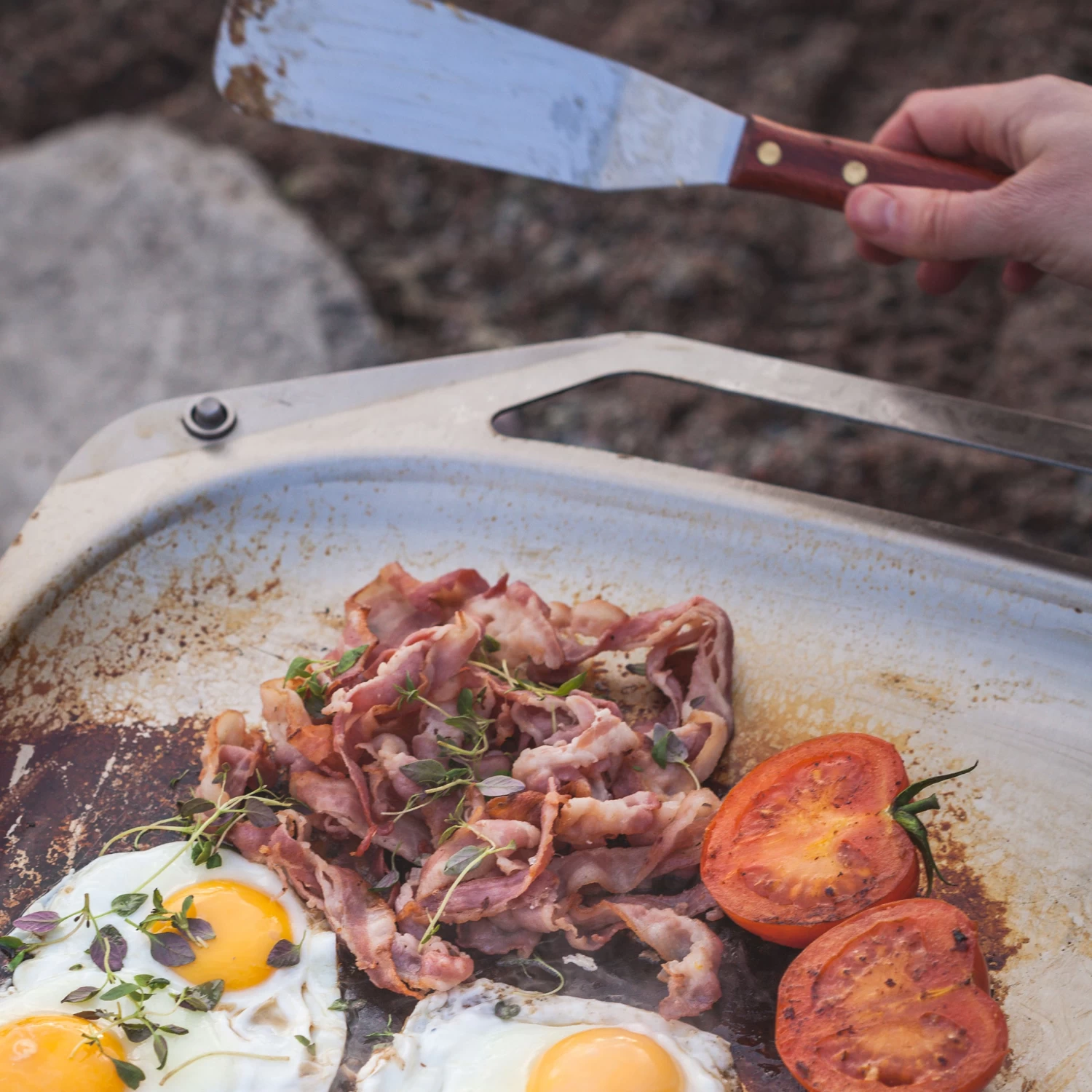 Spatula for outdoor cooking.