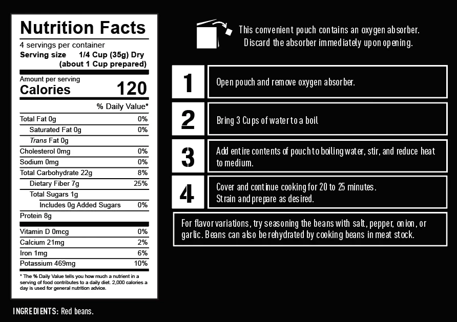 They can be used in a variety of ways, so you’ll never bore of eating them. Plus, they provide the nutrition you need to keep going, especially in a crisis. All the beans in our Ready Hour Beans Trio With Rice Kit are prepared from real cooked beans and long grain white rice. Our low-heat dehydration method locks in flavour and high-nutritional value.