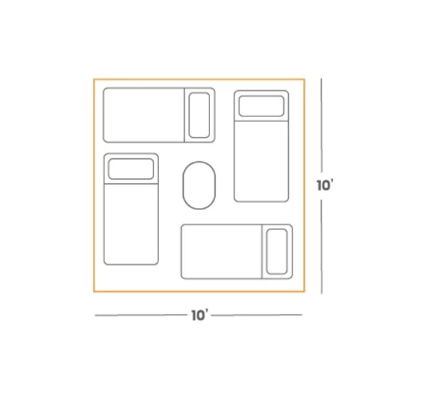 - Ceiling Material: Sunblock proprietary 10oz silver coated 100% cotton double fill canvas